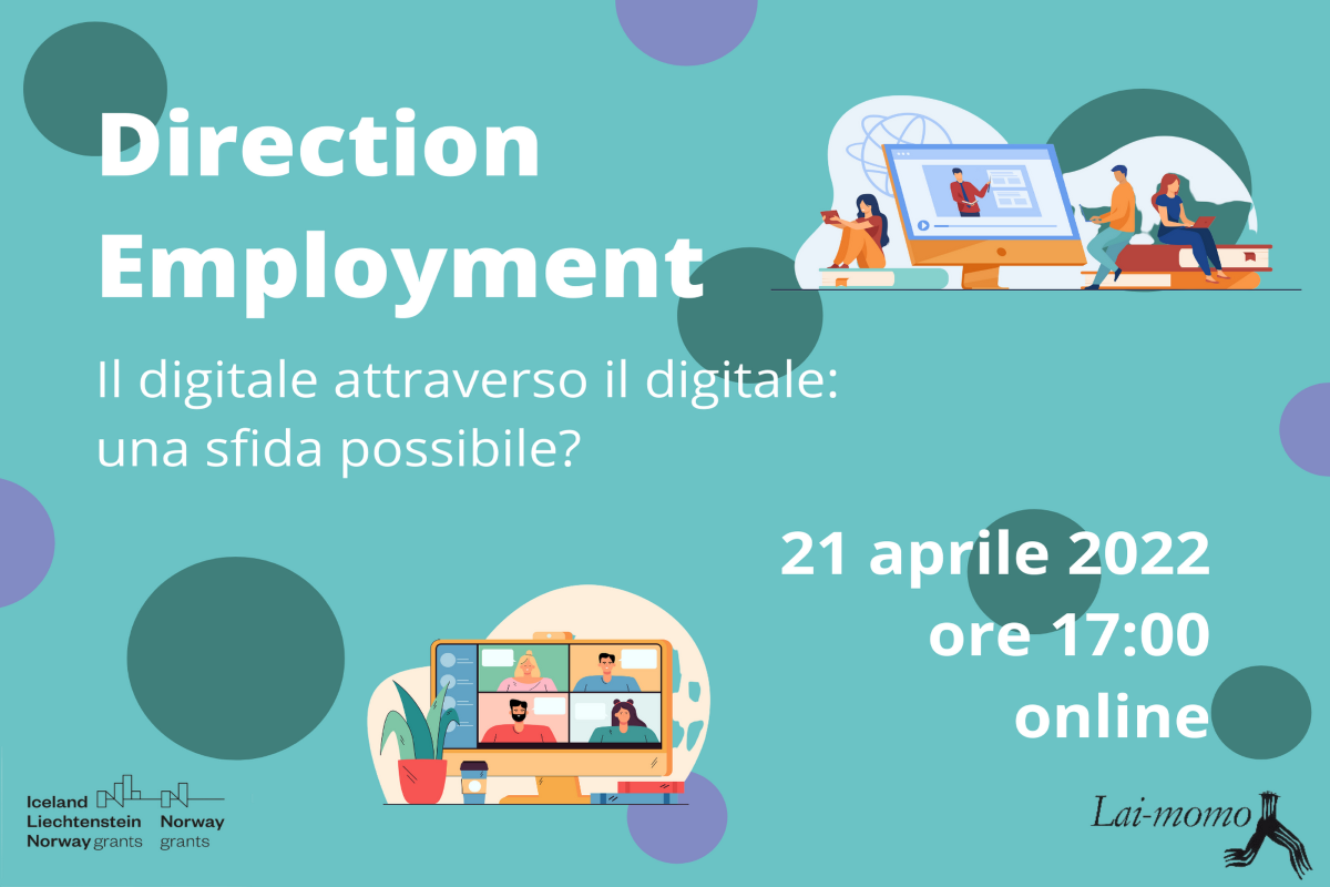 Lai-momo, partner italiano di “Direction Employment”, realizzerà all’interno del progetto un webinar rivolto a tutti gli operatori di associazioni, cooperative, ONG ed enti pubblici e privati interessati ad approfondire le tematiche dell’uso del digitale nello specifico ambito dell’integrazione e del supporto a persone vulnerabili, in particolare migranti.